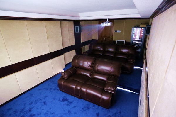 如图可见,顺着客厅的楼梯走下去,便是业主的独立视听室。