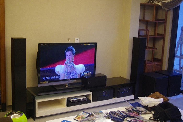 此次案例业主在客厅采用的音响系统为 M&K Sound 最新款落地音响 M&K Sound 950F Monitor一对,中置为M&K Sound 950、环绕为M&K Sound入墙音响 IW 85一对、低音炮M&K Sound SB 1250两只、前级功放为日本马兰士7005、后级为马兰士7055、日本先锋蓝光DVD、60寸液晶电视。