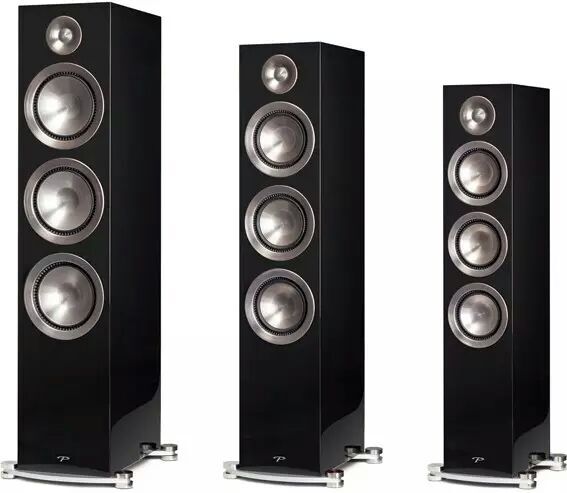 Prestige“威望”95F座地式扬声器高音部分采用1英寸Perforated Phase-Aligning(PPA)穿孔相位对齐技术的X-PAL“高音镜”球顶高音,并通过Finite Element Analysis(FEA)相位校正组装。高音单元下方中音单元为8英寸X-PAL磨砂纯铝音盆单元,并采用Paradigm专利的ART主动凸纹技术折环和Shock-Mount隔离安装系统。接着下方低音单元均为2个同样8英寸的单元。95F的频率响应为37Hz-20kHz,中高音间的分频点为2.0kHz、中低音间的分频点为400Hz,95F灵敏度为94dB,阻抗为8欧姆,最大输入功率为240W。