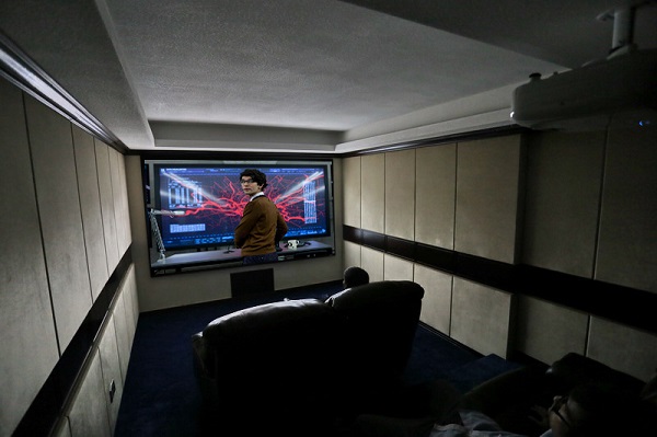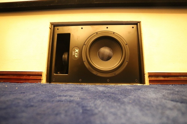 投影幕的最下方是放置M&K Sound X12超低音的位置。作为M&K高峰之作X12采用独一无二的推挽式双单元配置排除了失真,带来了6分贝的额外输出,增加低音细节和清晰度,充满威力和冲击力,给业主带来身临其境的完美感受。