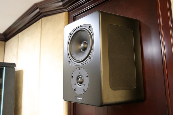整个地下室的面积不是特别大,因此我们选择了5.1声道。推开视听室的门,就能看见2只300T挂在两边的侧墙上。独立的侧箱体,为了能有最理想的环绕包围效果,每边配有两只4寸的单元,效果足以媲美专业影院中的阵列式的扬声器。