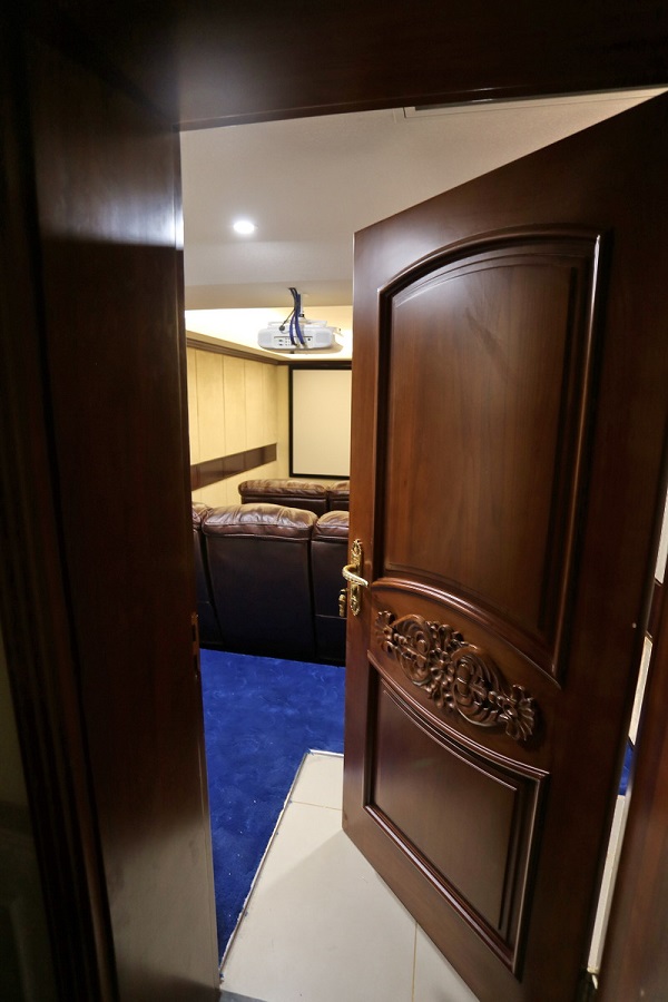 如图可见,顺着客厅的楼梯走下去,便是业主的独立视听室。