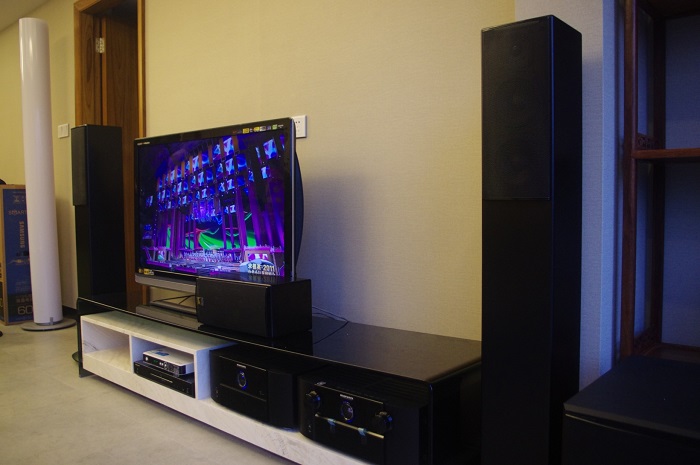 此次案例业主在客厅采用的音响系统为 M&K Sound 最新款落地音响 M&K Sound 950F Monitor一对,中置为M&K Sound 950、环绕为M&K Sound入墙音响 IW 85一对、低音炮M&K Sound SB 1250两只、前级功放为日本马兰士7005、后级为马兰士7055、日本先锋蓝光DVD、60寸液晶电视。